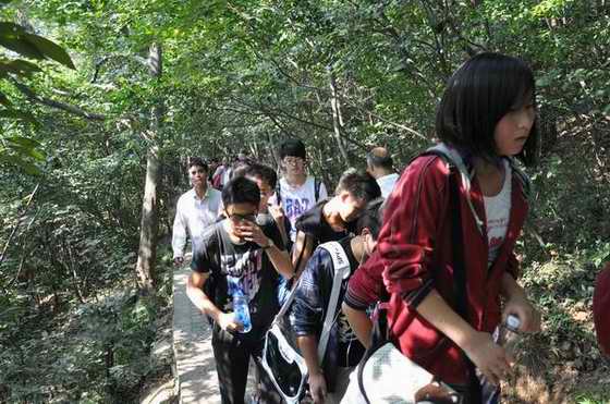 高一十二班全体团员在团支书的组织下进行了爬山活动。十月一日上午九点全体团员在指定地点集合开始爬山活动。在爬山过程中,大家克服身体上的不适,坚持、不放弃,同学之间相互鼓励相互帮助。最后,经过两个小时全体团员登上紫金山顶,并拍照留念。