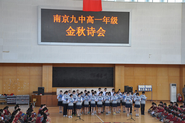 金秋十月,丹桂飘香,我校又迎来了2012级高一年级金秋诗会。在经过校德育处的悉心指导,年级部的精心策划,14位班主任的积极配合,高一学生的有效投入,诗会于10月17日(周三)下午于体育馆如期举办。各班采取随机抽签形式确定上场次序,表演形式也多样丰富,有独诵、小合诵﹑大合诵等形式,诗歌内容有较多都是学生自创。会场气氛热烈而有序。充分展示了高一学生的素养和风采,提升了学生的品味诗歌体悟人生的境界。经语文组老师的裁决,现场确定了比赛结果。特别值得一提的是进出场的井然,德育处陆主任给以了较高评价。金秋诗会最终获得了圆满成功。