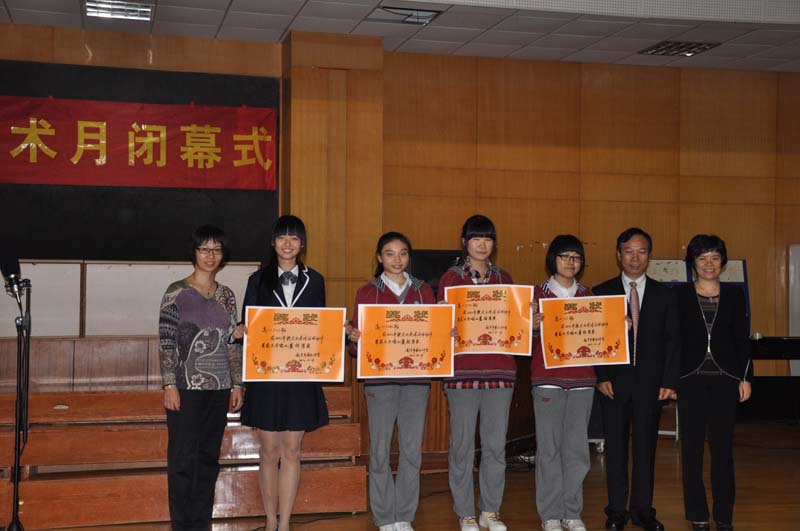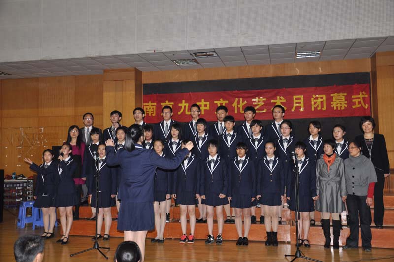 在十月校园文化月的收尾阶段,一场热烈的九中全校大合唱比赛开始了。刚刚结束了金秋诗会后,高一年级同学在仅仅一周的时间内紧锣密鼓的排练,各个班级都积极参与,抓紧时间练歌。在诸校长和德育处陆主任的指导下,经过初赛,高一年级七个班级进入了决赛阶段。班主任老师也热情得加入大合唱的行列,把比赛的气氛推向了一个又一个高潮。最终,高一(14)班与高一(13)班获得特等奖,高一(2)班,高一(3)班,高一(5)班,高一(10)班与高一(11)班勇夺二等奖。高一年级同学们文明观赛,时而爆发出热烈的掌声,时而感动得认真聆听,充分体现了高一年级良好的纪律性与高度的参与性。