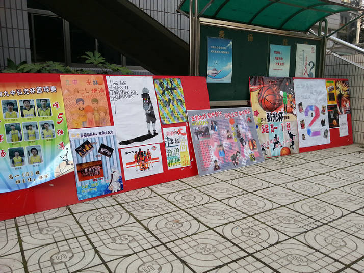 在九中校团委学生会体育部的精心组织和校体育组的全力支持下,3月7日和3月8日下午的体育活动课上,作为九中的一项传统活动——弘光杯篮球赛正式开赛了,高一年级14个班级首先采取单循环淘汰赛的形式进行了第一轮的比赛。“文明比赛,文明观赛;打出气势,赛出风格”是本次活动的口号。为了营造良好的比赛氛围,赛前,由学生会宣传部组织各班制作了精美的宣传海报,总务处也为本次比赛制作了宣传横幅。在比赛中,各班班主任和班委干部积极组织本班同学为自己的运动员加油助威。希望在各部门的大力支持和配合下,九中2012~2013学年弘光杯篮球赛能够取得圆满成功!