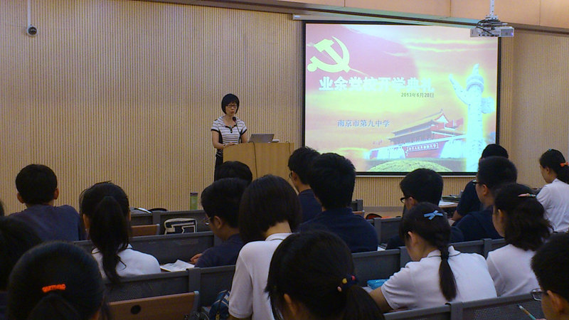 2013年6月28日晚上6:00,由高一、高二年级各班推选的学员在弘光楼1楼报告厅参加了2013届业余党校开学典礼。