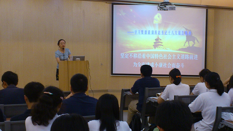 开学典礼结束后,顾芳老师、周佳老师、左蓉老师分别就“科学发展观”、“党的18大工作报告”等问题进行了深入、具体的阐述与分析,并和同学们一起就“我们为什么要加入党组织?”,“如果成为一名党员,我们能做些什么?”等问题展开讨论,从多个角度对学员进行马列主义理论、共产主义信仰的阐释。