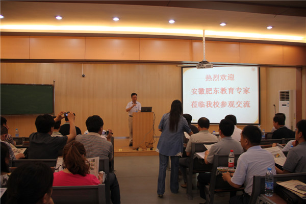 7月18日上午,来自安徽肥东的教育专家一行80余人来到我校参观考察,校长张恒柱和九中调研员王伏才全程陪同。在弘光楼一楼会议室,王伏才同志向客人们介绍了九中的办学历史、办学思想、办学特色、地平线课程等情况,并和总务处的桑小兵主任回答了在座人员的各种提问。随后,张校长、王校长和客人们一起参观了校史室。