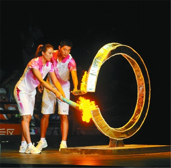 九中仇力涌同学携手奥运冠军点燃第二届亚青会主火炬