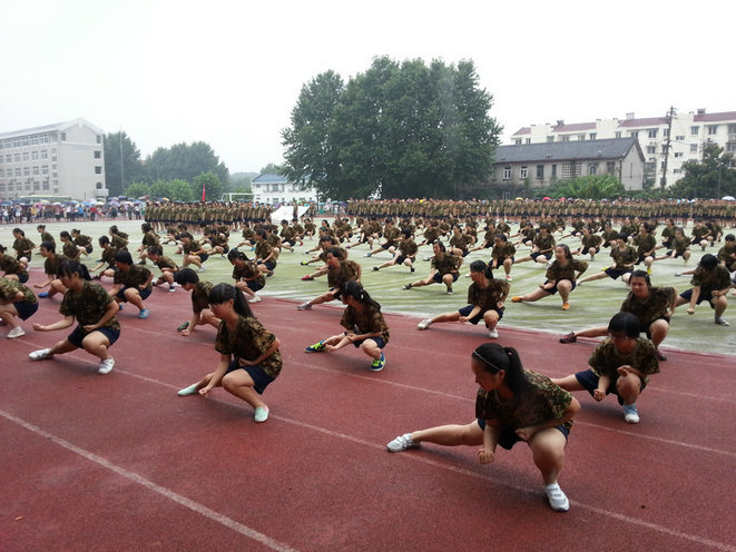 、训练科目表演、军体拳表演、拉歌表演……振奋人心的口号,整齐划一的动作,因为学生们的精彩表演,现场不时的传来掌声和喝彩声。在整个过程中,九中师生始终保持者良好的精神面貌,得到了现场观摩的家长和媒体记者的一致好评。
