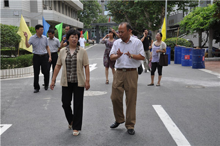 杨主任来到九中,直接对学校的校园建设进行了实地察看,她边走边看边问。首先,她向校领导询问了学校的办学规划、学校软件硬件的建设、操场目前的施工进度、需要解决的困难等情况。接着,她到学校食堂详细了解了卫生状况和学生的就餐情况。杨主任对九中近年来取得的成绩进行了肯定。她希望教师们在平凡的岗位上展示才华,愉快工作,在教育这块热土上辛勤耕耘,幸福生活。最后,她代表区总工会向九中送上浓浓的教师节祝福。(九中)