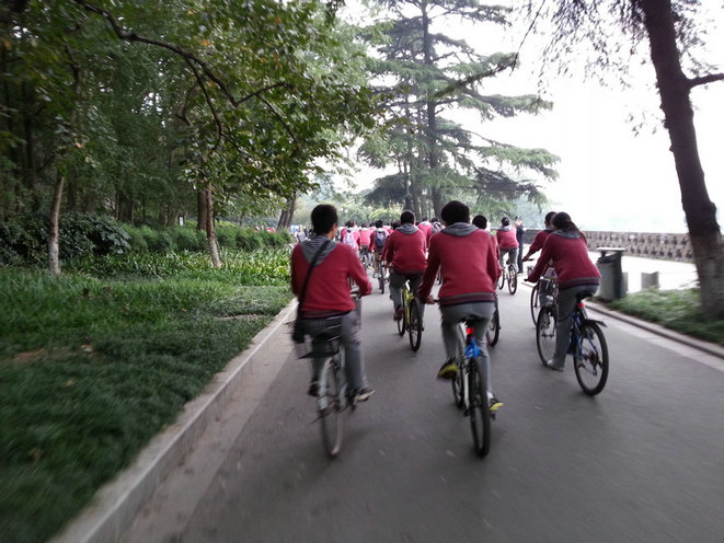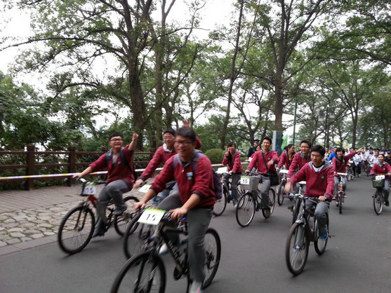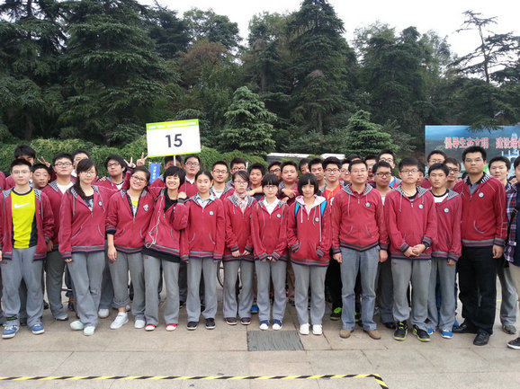 10月19日上午7:00,南京九中高二年级的37名学生在周易宏副校长,德育处吴昊老师和年级部陈光老师的带领下,参加了玄武区教育局和体育局组织的“迎青奥”倒计时300天自行车骑行活动。活动中,九中骑行方阵统一的着装,博雅的气质,成为了媒体关注的焦点。