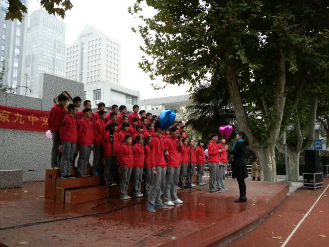 10月30~31日,南京九中2013年校园文化艺术月闭幕式暨大合唱决赛在学校田径场和文艺楼演播厅顺利举行。本次比赛邀请了南师大四位实习老师,并请来了校文艺中心特级教师钱逸瑞老师、张薇老师、杨芳老师和张想老师作为评委。林啟红书记、诸谦副校长、校德育处沈伟主任等多位学校领导亲临现场,整个决赛过程秩序井然,虽然在第一天遇雨中断,但是经过年级部、德育处、信息处和总务处的积极协调,使决赛在今天中午得以继续进行。