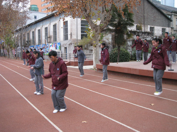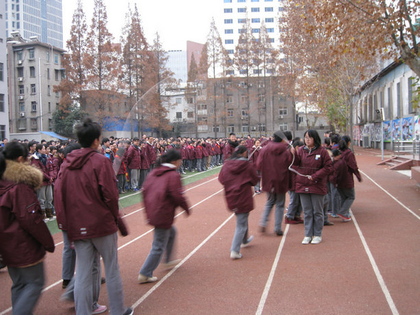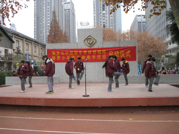 今天晨会上,“南京九中校园冬季体育锻炼暨青少年阳光体育节”活动正式启动。启动仪式中,九中学生会体育部部长王晨宇同学做了主题发言,号召全体同学为了增强体质,积极主动地加入到冬季锻炼活动中。此后,部分同学进行了“冬季三项”表演(跳短绳,跳长绳和踢毽子)。