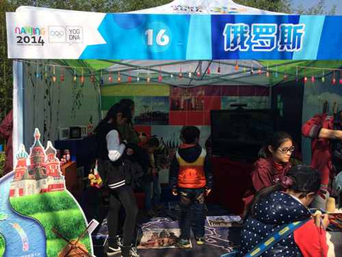 南京九中将青奥文化小屋的主题定为“俄罗斯——伏尔加河流过的灿烂”。因此,小屋的设计理念是围绕俄罗斯的伏尔加河,让每一位参观者身临其境,沉浸于河畔的自然美景中,真切感受俄罗斯文化真谛。小屋的左边,以实体的俄罗斯方块作为特色展示柜,展示俄罗斯的特色工艺品,例如:套娃、锡器、漆器,还有俄罗斯地标性建筑——瓦西里大教堂。小屋右手,则是特色签名墙和照片墙,整个墙主要的背景就是俄罗斯的国花——向日葵,体现了俄罗斯人热情、积极、向上的生活态度。在现场,很多参观者看了以后都表示,展厅布置很精致温馨,让人对俄罗斯文化充满了向往。