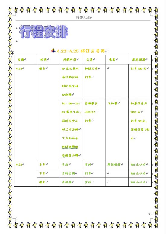 高一(7)班李覃信息技术课作业(旅行策划)