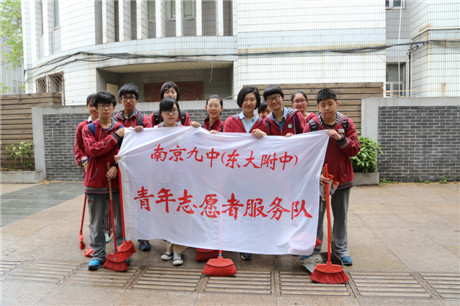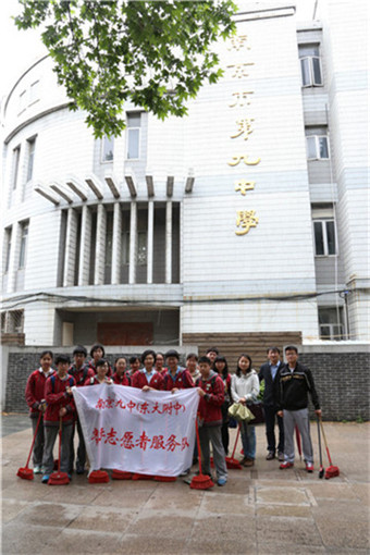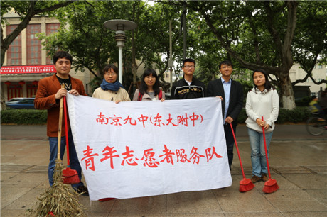 2014年5月11日中午12:25分,南京九中教工团支部育人小组青年文明号,积极响应市区政府号召,组织精干成员开展“环保迎青奥,大干一百天”义务清扫活动。