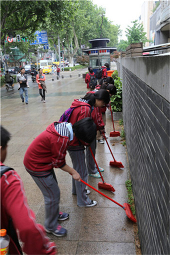 活动由我校获得玄武区奋斗好青年和创新号青年称号的教师代表吴昊老师和张蓉老师带队,共有10位青年教师和10位青年学生代表冒雨参加了此次活动。虽然是雨天,但是这丝毫没有影响小组成员的热情,他们早早的就来到长江路文化一条街,开始清扫路边的梧桐树毛,清理花坛里的纸屑,擦洗路边的公用电话亭。平时团员老师们的工作都很辛苦,他们几乎人人都是班主任,每天都要面对管理班级和组织教学的双重压力,今天能够牺牲难得的休息时间参加义务清扫活动,足以证明九中教工团支部育人小组青年文明号的号召力和影响力。看到被打扫的干净整洁的街道,志愿者们深深地体会到劳动的快乐与为社会服务的满足。