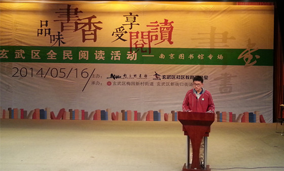5月16日下午2时,南京九中高一(6)班全体学生在班主任韩丽丽老师的带领之下,来到南京图书馆多功能厅参加玄武区“品味书香,享受阅读”全民阅读活动。首先,玄武区各街道及中小学生代表上台分享读书心得。南京九中高一(6)班胡啸同学代表学校发表了题为《现实与幻想的距离—读<格列佛游记>有感》。然后,南京市三位知名作家就读书给他们带来的益处做了分享,如读书能提高人的心智,读书能提高人的情商等。最后南京图书馆的工作人员为大家推荐了适合未成年人阅读的中英文书籍。