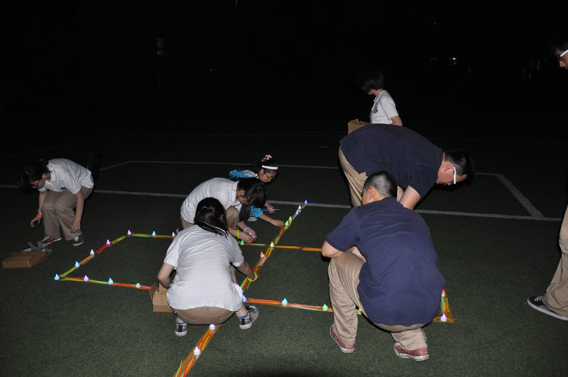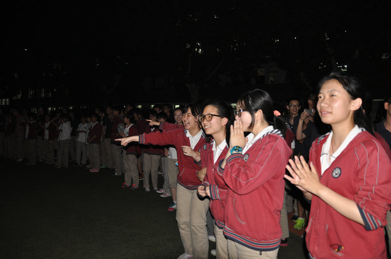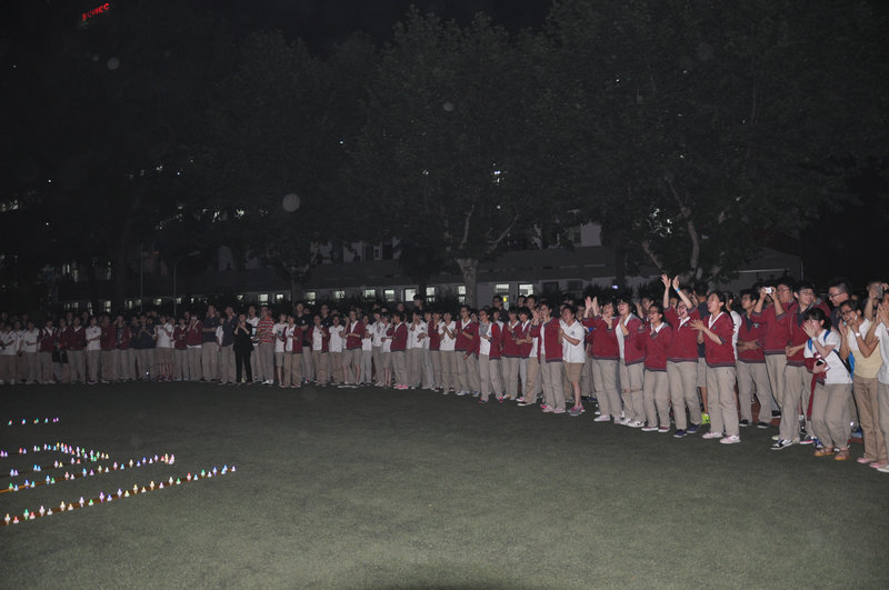 5月29日晚20:40,九中高二年级全体同学在校德育处吴昊老师,校团委书记李净老师,学生会干部朱丽娜、梁箫、时界等同学的精心策划和组织下,由各班班长、团支书带领本班同学来到学校大操场,为十天后参加2014年高考的高三同学们加油呐喊。