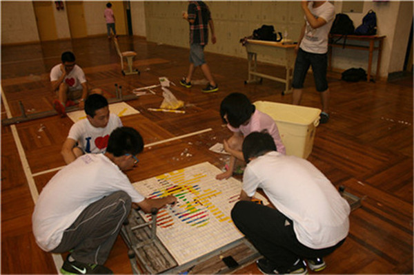7月17日,九中的同学与港澳台的同学们在志愿者的带领下,开展了多米诺骨牌的搭建活动,同学们互相协作,尽管在搭建过程中因为不小心多次碰倒了骨牌,但同学们并没有气馁,最终,他们完成了自己作品。