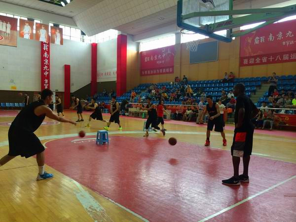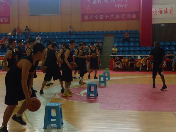 在简短的欢迎仪式之后,麦克威廉斯·富兰克林被带去中山东路体校训练女篮选手。而奥弗顿则被带到九中体育馆三楼,在这里,九中男篮的队员们正在热切地盼望他的到来。奥弗顿热情地跟每一位在场的男篮队员们打了招呼,然后开始积极投入了训练。本次训练分为两部分,前半段主要是他亲自演示,后半段主要是教授一些基本的篮球技术。在他的主持下,整场训练节奏紧凑,防守、带球过人、突破、运球、传球等技术要领都得到了详细的讲解。“老外”给九中的运动员带来新的训练理念,从持球突破筐降低重心,到传球的落点,从原地投篮开始到移动投篮手把手言传身教,让孩子们过足了“N B A的瘾”。更值得一提的是,与传统的教授方式不同,奥弗顿带领球员训练的时候语言生动,富有激情,善于调动现场气氛和球员的积极性。球员进球以后,或者动作标准,他都会给与鼓励的掌声,或者击掌庆贺,现场掌声不断,欢呼声不断。