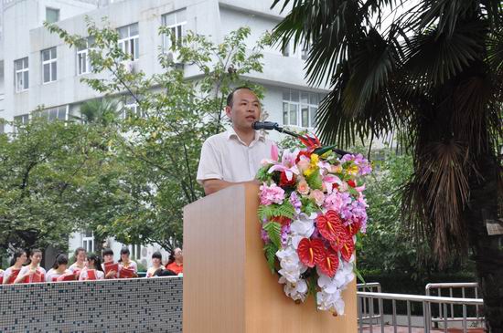 伴随着九中张恒柱校长的新学期致辞,开学典礼进入了起航篇。高三年级部主任张翼飞老师带领着高三所有的班主任登上主席台,向高三的同学们说出了新学期的新希望和美好的祝愿,号召同学们在最后一年中努力进取,勇攀高峰。高二年级优秀学生代表余嘉依同学则代表同学们发出了号召,要用自己的行动为第30个教师节献礼。