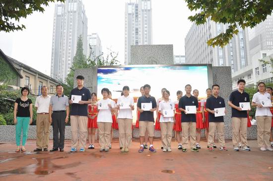 回望2014学年,南京九中取得了辉煌的成绩。在此过程中,南京九中涌现出了一批品学兼优、全面发展的优秀学生。在典礼的回眸篇中,南京九中表彰了邓颖超奖获奖同学,表彰了南京九中2013-2014学年三好生标兵、优秀学生干部、三好生和优秀团员。梅园新村纪念馆王化许馆长、九中张恒柱校长、校党总支林啟红书记、九中诸谦副校长、高骁俊副校长和周易宏副校长为这些获奖同学颁发了证书。优秀同学的表彰将更好地激励同学们努力学习。