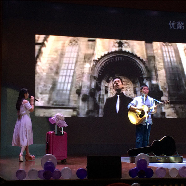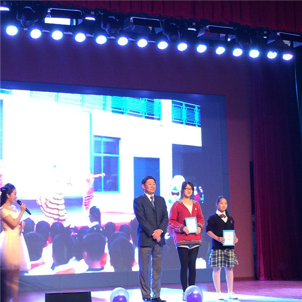 颁奖盛典在由各社团精心制作的社团介绍视频中拉开帷幕,高二年级胡啸和陆迦卉同学作为特邀表演嘉宾为大家献上了由校团委精心策划的表演唱Lucky,得到了全场观众的热情掌声。