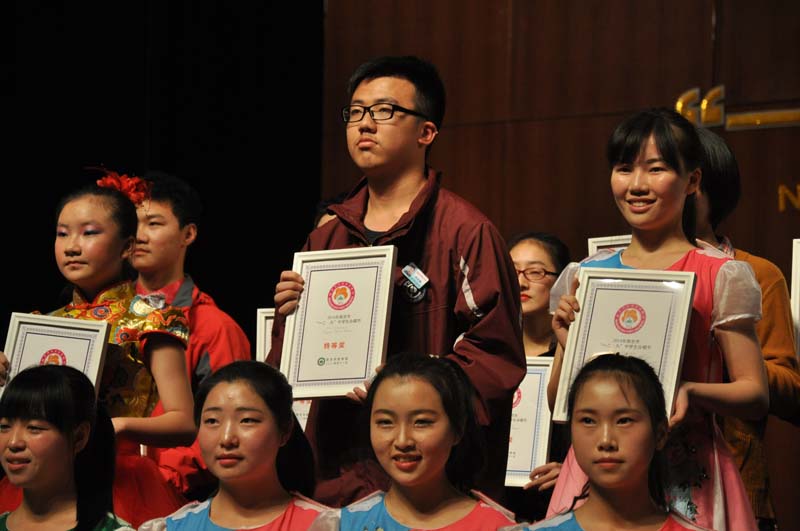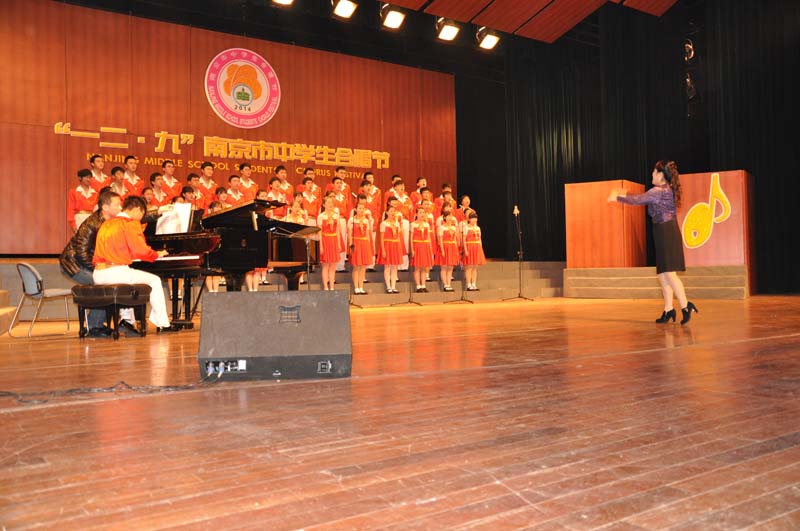 ﹒ 2014年11月29日下午,“南京市中学生一二﹒九合唱比赛”在长江路文化艺术中心举行。我校合唱团以玄武区第一名的成绩代表全区的中学生参加了这次比赛。这次南京市共有19支队伍参加,全是各区县选出的最优秀的合唱团,竞争相当激烈。九中合唱团的全体师生利用中午休息时间和晚自习时间,进行了认真细致的排练,在最后的比赛中,以声情并茂的表演、训练有素的歌声打动了全场的评委和观众,最终获得了中学组特等奖第一名的优异成绩。同时,杨芳老师获得了优秀指挥奖,徐竟天同学获得最佳伴奏奖。在此,我们要表扬为我校获得荣誉的全体合唱团员们;感谢为此付出辛勤汗水的文艺中心的杨芳、张薇老师;也感谢校领导、年级部的大力支持。