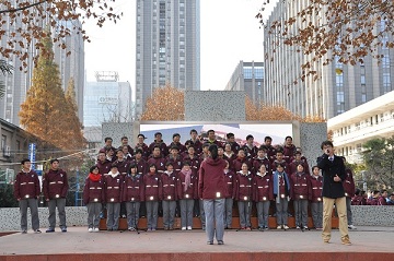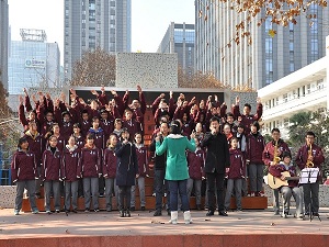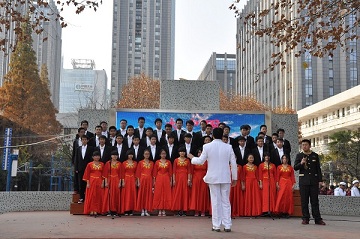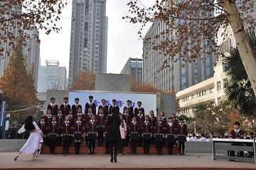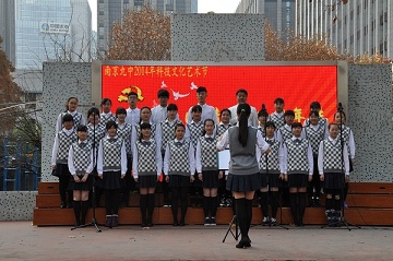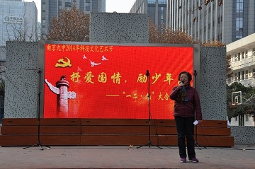 2014年12月9日中午,为了纪念“一二·九”运动79周年,南京九中高一、高二年级在大操场举行了大合唱比赛。担任这次比赛的评委有南京九中党总支林啟红书记、诸谦副校长、德育处沈伟主任、音乐特级教师钱逸瑞老师和文艺中心杨芳老师。