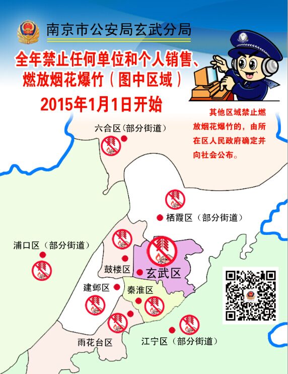 2015年1月1日开始,玄武区全年禁止任何单位和个人销售、燃放烟花爆竹。