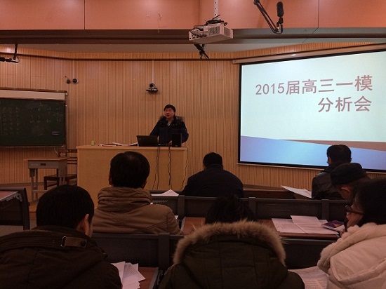 1月28日下午,全体高三教师在我校报告厅召开2015年南京市一模成绩分析会,学校领导张恒柱校长、林啟红书记、周易宏副校长、诸谦副校长、高骁俊副校长出席此次会议,会议由年级部张翼飞主任主持。