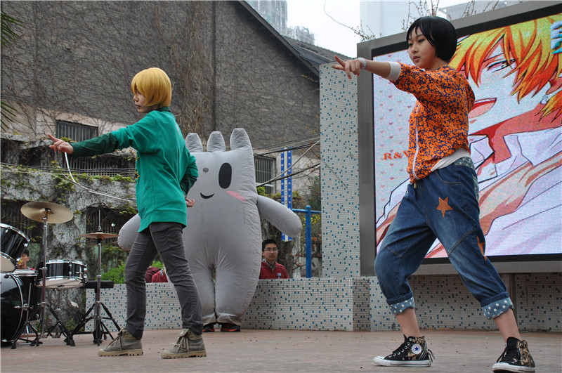 二次元的世界被她们带到了校园舞台之上,让同学们感受到不一样的世界。她们的活泼她们的美丽无不使众人折服。随着她们“”的舞步,同学们也仿佛到动漫的世界游了一圈。