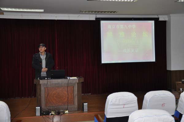 4月8号下午,九中举办了第39期“博雅论坛”。今天论坛的主题是“成长见证”。学校获得“南京市优秀青年教师”称号的丁翼飞、孙霁蔚、李净三位老师是本期论坛的主讲人。三位青年教师分别从不同的视角介绍了自己成长的历程,与全体教师分享了她们专业发展经验和成功的喜悦。省特级教师、学校教科处主任张德举老师用八个关键词“目标、学习、反思、研究、实践、坚持、改变、感恩”概括了三位教师成长的共同经验。 此次论坛有幸邀请了国家督学成尚荣先生作为点评专家。成先生对三位青年教师的报告和南京九中的学校文化、教师精神面貌、办学业绩均予以高度评价。成先生认为九中底蕴深厚、学校文化品位极高、渊源久长,为教师专业发展和学生发展提供了厚实的文化背景和不竭的文化动力。三位青年教师的报告真诚、平实、深刻、具体、感人。他认为教师的专业成长实际上是一个不断寻找的过程,即寻找文化的力量、文化的精神、文化的价值;寻找青春,寻找道德,寻找专业,寻找主张的过程。 校长张恒柱、总支书记林啟红、副校长诸谦、傅强等参加了本期论坛。论坛上张恒柱校长高评价的三位青年教师的师德水平、专业功底、教学业绩、科研能力,他要求广大青年教师要想这三位教师学习,勤学习、勤思考、勇探索、常反思、多总结,要深入领会成尚荣先生的点评和有关教师专业发展的思想,做一个有追求、有道德、有精神、有主张的教师,在专业上寻找自己的突破口,永葆自己的教育青春,为南京九中的发展再立新功、再创辉煌!