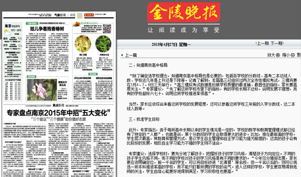 4月24日,南京市教育局在田家炳高中召开全市高中招生大会,但传说的招生新政还是无法完全落地,据权威专家透露,今年全国高中招生政策面临重大调整,南京的中招政策无法单独出台,但招生中的“见分填报志愿”等新变化已经“板上钉钉”。为此,本报特邀请专家在中招之前给家长“补补课”,家长们不妨趁此时透彻了解一下高中学校的基本情况,熟悉一下招生策略,以防在填报志愿时犯一些低级错误。