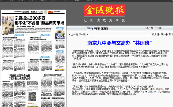 据介绍,此前九中和人民中学合办“九中班”,至今已经是第三年,“九中班”就在九中上课,全面享受九中的优质资源。而今年,九中首次与玄武高级中学合作创办“共建班”。