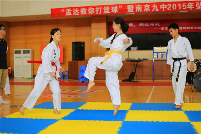 二是南京九中博雅社团联盟的社团巡演;学生社团是活跃在九中校园内外的一群有才干有共同爱好的学生组织。学校确定了学生社团精品化发展的思路,目前,学校共有 “弘光文学社”、“学生电视台”、“东南之声电台”、“缇香美术社”、“话剧社”、“悦满斋相声社”、“模拟联合国”、轮滑社等20多个社团,成员达1000余人。汉服社的成员们穿着华美汉服表演的“礼仪之邦”带我们经历了一场跨越千年的旅程。截拳道社的同学们穿着道服耍着双截棍,劈着木板,惊得台下同学都长大了嘴。二次元的世界被 R&W 动漫社的姑娘们带到了校园舞台之上,让同学们感受到不一样的世界。随着她们“月光协奏曲”的舞步,同学们也仿佛到动漫的世界游了一圈。只听得电吉他狂野的音乐声响起,梦之声音乐社的“Its my life”的演唱开始了。架子鼓、贝斯、电吉他、电子琴和主唱的完美配合,造就了一场音乐的盛宴。虽然硬件设配不是最好的,但热爱音乐的心是火热的……丰富多彩的社团活动充分吸引了初中校的每一位同学,也让他们对九中的高中校园生活满怀了向往与憧憬。