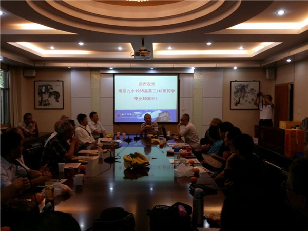 2015年9月12日上午,怀着对母校深厚的感情,对老师无尽的感恩,九中65届高三(四)班校友来到母校欢聚一堂。这次聚会对他们意义深远,既是热烈庆祝母校90周年校庆,还是庆祝毕业50周年,也是庆祝他们自己70岁生日。老照片里,一张张脸庞绽放着意气风发,他们的记忆储存着青春勃发.这里有他们最难忘的学习生涯,这里有他们最珍贵的师生情谊。