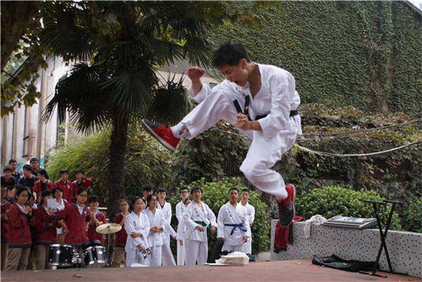 活动在音乐社的表演中拉开帷幕,台上展示着各社团精心制作的PPT,配上各社团的介绍,台下的同学更是在各社团展台间咨询报名。汉服社精美的照片吸引了许多同学驻足,穿上汉服,象征着汉界文化之美,泱泱华夏之礼仪铭记心中。动漫社的社员现场cosplay吸引高一同学加入,当动漫社的社员上台表演,台下的气氛更加火爆。摄影社展台前,咨询的同学络绎不绝。此次招新,低调神秘的化学社成员集体登场。他们抛开神秘的光环,招兵买马,复兴化学社。最后,活动以截拳道社的表演结束。弘扬中华千年传承学习传统武术之精髓,领悟截拳道之道义。截拳道社的社员们,用他们精彩的表演诠释武术的精华。