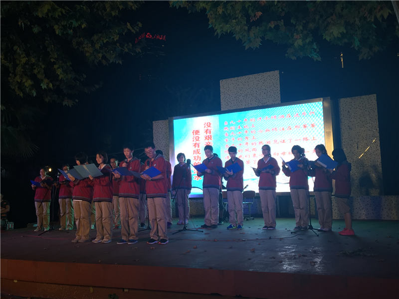 最后高西栋老师为本次活动做了精彩的总结,他对高一年级全体师生在今晚的表现给予了充分的肯定,评价同学们对诗歌的理解和审美到位,朗诵表演形式恰当多样,朗诵声音抑扬顿挫,体现出华夏母语的音色美和音调美。