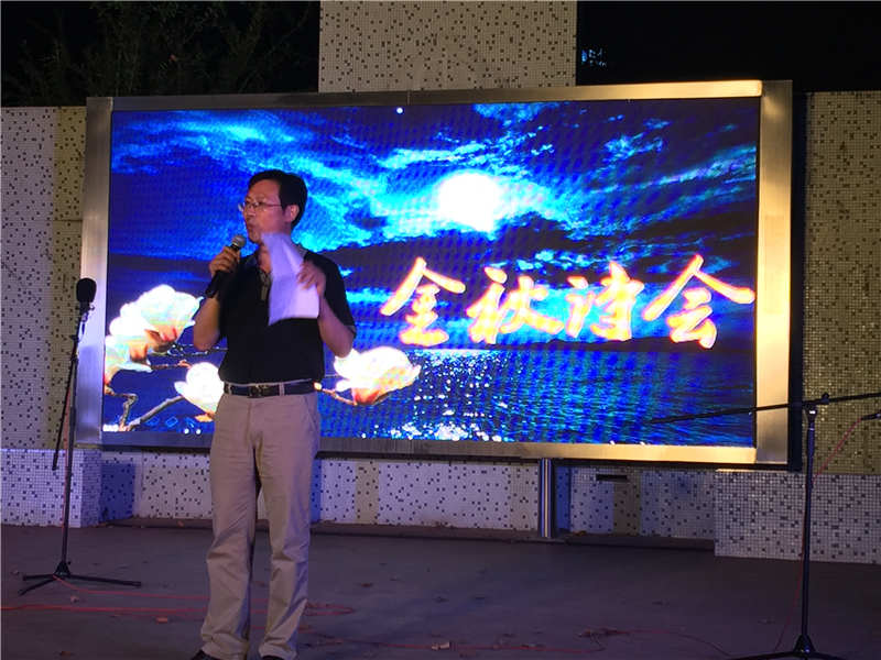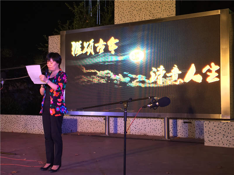 2015年9月25日晚上18:30,南京九中在大操场上隆重举行了以“雅颂古今,诗意人生”为主题的金秋诗会。本次活动由校德育处积极筹备,校团委书记李净老师精心组织并策划,邀请了南京九中林啟红书记、诸谦副校长、德育处沈伟主任、教科室副主任、语文特级教师高西栋老师和高一年级语文组毛依萍老师、丁春萍老师、吴志群老师担任评委。