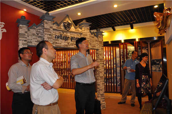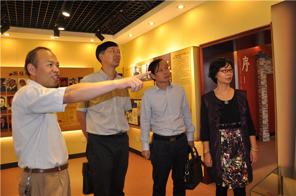 张局长来到后九中就直接巡视了校园,张校长、林书记一边陪同一边向张局长汇报了学校开学一个月来各方面工作情况。接着,张局长实地查看了九中知名校友杨德广捐资修建的阳光亭的情况。随后,张局长又来到修葺一新的九中校史馆参观,校史馆一幅幅生动的图片、一件件珍贵的展示品向人们诉说了九中九十年的坎坷、变迁与辉煌。张局长询问了学校九十年校庆筹备情况,他希望九中将校庆工作作为一个平台和窗口,要传承好九中优秀的文化、挖掘出九中优秀的校友资源,扩大学校的影响力、进一步提高学校的凝聚力、为学校的发展提供多方助力,促进学校工作又快又好地发展。