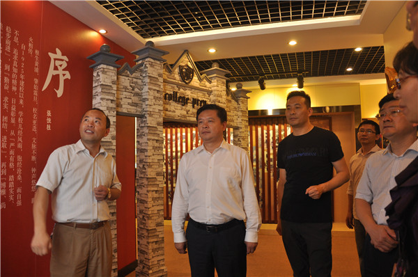 在视察过程中,张校长和林书记向区长和随行领导汇报了九中的办学历史、办学思路和办学业绩。徐区长特别关心九中的教育教学质量,他询问了目前学校教育教学管理的状况、取得的效果、今后工作的打算,他对九中教育教学取得再突破寄予厚望。在视察的过程中,徐区长参观了承载了九中人九十年的奋斗历程的校史馆。徐区长希望九中人在回望历史之时,更要谋划好未来,让九中今天的辉煌续写在九中明天的历史回忆录中!