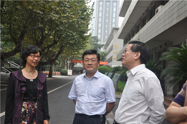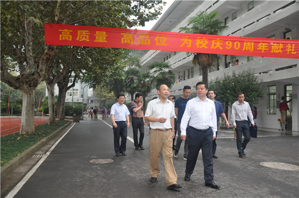 9月30日下午,在玄武区教育局李玉鹏局长、区教育局工委陈发山书记的陪同下,玄武区区长徐曙海、副区长蒋兆全冒着小雨来到九中视察学校工作。九中校领导张恒柱校长、林啟红书记迎接了视察领导。
