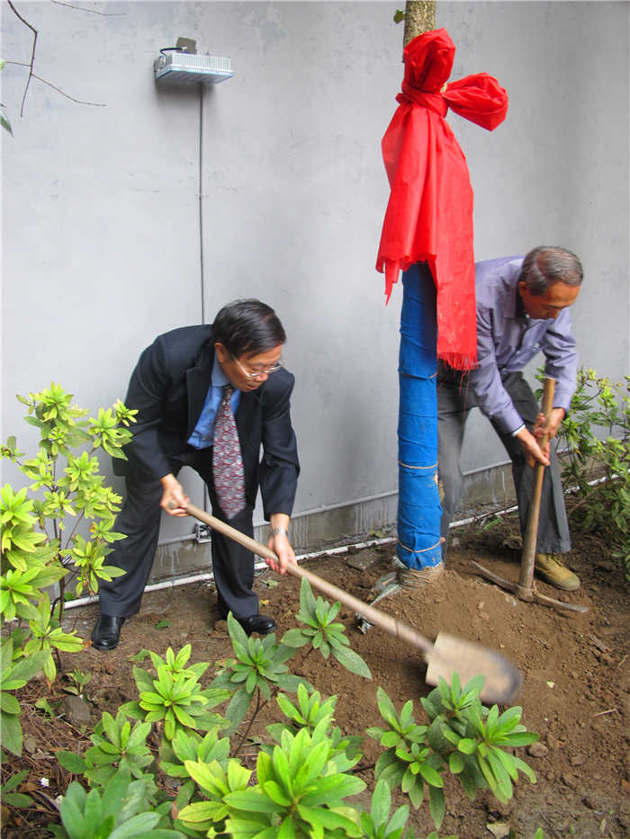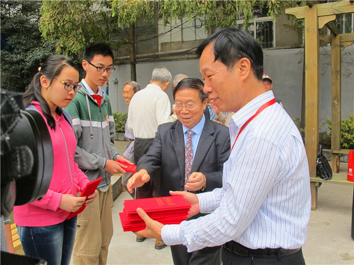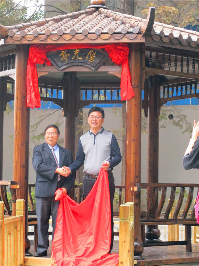 玄武区教育局工委书记陈发山先生出席此次活动,并与杨德广教授共同为“阳光亭”揭牌。南京九中校长张恒柱老师、南京市第九初级中学校长倪宗磊老师,杨教授的同学,也就是南京九中1960届校友们一起参加了此次揭牌仪式,见证了九中校友关心母校、热爱母校的真挚感情。