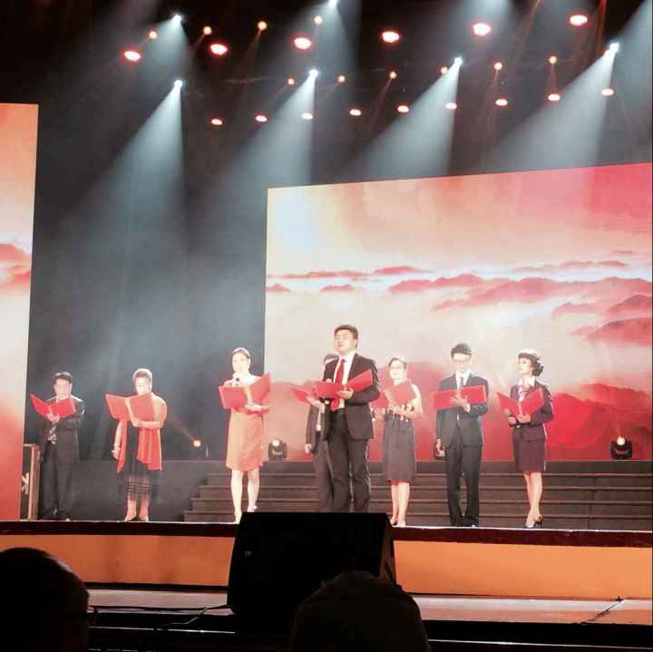 奏唱国歌后,南京市第九中学校长张恒柱致辞祝贺学校办学九十周年。在接下的的文艺展演过程中,台下不时掌声雷动,观演的同学和校友、友邻单位的领导都被演出的盛大气氛所感染。本次的文艺汇演节目都由九中师生和校友自编自导自演、演出内容积极向上,具有鲜明的时代特色,表达了校友们对九中深厚的爱。由75届校友孙琳宁作曲的舞蹈《天边的红云》曾获得多项奖项,参演人员们从8月20日就开始进行紧张的排练。“我们最大的62岁,最小的只有13岁”指导老师张勰骄傲地说,舞蹈极具舞台感染力,刚柔并济,演员们身着红军军装,手持长枪,21人的团队(10名校友,10名第九初级中学在校学生,1名九初舞蹈老师)全员为女性,却给人一股史诗般的冲击力。随后,由九中教师创编的《晨钟九歌》向大家介绍了历年南京九中的曾用名以及多年来九中的办学成果。由81届校友刘妍独唱、77届校友王珏领舞的《我爱你中国》用极具穿透力的嗓音、出色的舞蹈配合震撼了全场。“我们都是文艺班出身,那时候的文艺楼还是一幢摇摇欲坠的小木楼呢”校友王珏回忆说。据悉,两位校友都是特地从国外赶回来为母校庆祝90岁生日,行程和排练时间都很紧,但他们都用心给母校献上了最好的表演,其中校友刘妍已经是第三次参加校庆了。歌曲联唱《难忘的歌声》由多位校友不同歌曲选段串联而成,形式以歌为主,辅以伴舞,表演者有70年代毕业的也有前几年刚离开母校的,形成了时代的碰撞,也体现了校友们对母校深厚的感情,为上篇画上了圆满句号。下篇压轴节目《晨钟赞》与本次校庆成果展演题目相辉映。由张恒柱校长亲自参演、九中音乐老师杨芳等带领的校师生合唱团为校庆献上了最后一曲。