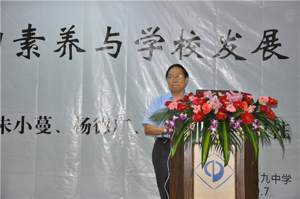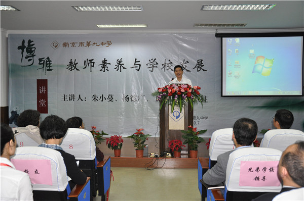 10月7日9时,南京市第九中学九十周年校庆活动从热闹回归到平静。此时,在学校弘光楼四楼报告厅一场主题为“教师素养与学校发展”报告会正在举行。不到两百人的报告厅汇集了九中和兄弟学校的老师。不大的报告厅里,不仅有来自省、市、区三级教育主管部门的领导,而且聚集了在国内、甚至在世界上颇有知名度的大家。