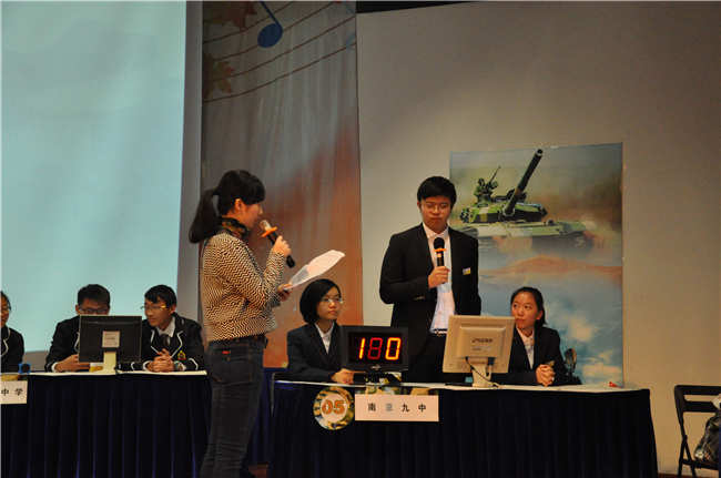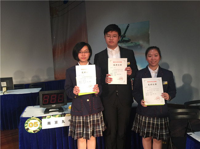南京市第九中学承办了此次活动,为活动做了大量细致而周到的准备活动。同时,派出了以高二(11)班的金夏卿、高二(12)班的李文博、高二(13)班的刘博雯为选手的代表队参加此次比赛,获得了南京市二等奖的好成绩。