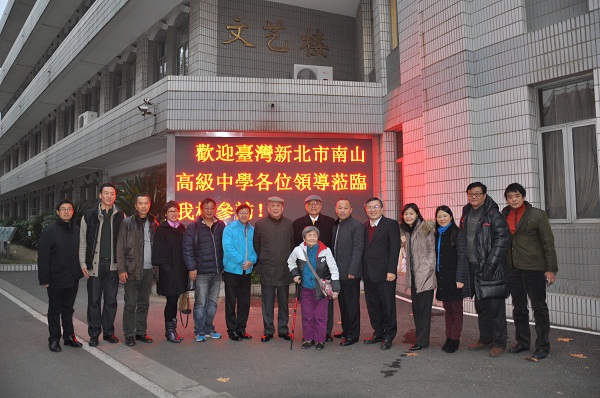 12月23日下午,台湾新北市南山高级中学的董事长王继光携夫人、校长蔡铭城先生、总务主任王思元先生、教务主任林世皇先生、办公室主任崔秀云女士一行6人来到九中进行访问,在访问团中还有北京四中知名的前任校长邱济隆先生陪同前来。南京市台办对外联络处处长胡晋梅、南京九中张恒柱校长、高骁俊副校长、桑小兵主任、范铁铭副主任、李菊平副主任、篮球队教练董邕宁参加了接待。