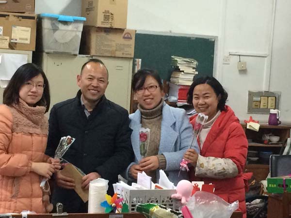 为了表彰广大女性教师在学校各项工作中发挥出的“半边天”的作用,九中按照惯例开展了寻找身边“最美女教工”的活动。今年的庆祝活动除了要展示女教工岗位奉献的风采,学校还从实际出发,考虑到女教工既要在学校长时间承担繁重的工作,又要买菜做饭操持家务,学校还专门为女老师准备了物美价廉的水果和净菜。学校专门制作最美女教工宣传展板和滚动视频大力宣传她们为学校各项工作做出的贡献。学校领导张恒柱、党总支书记林啟红亲手将一枝红玫瑰、一盒水果送到每个女教工手中。学校的男教师还通过QQ、微信等形式为“半边天们”送上温馨的祝福。贴心便利的服务受到了广大教师的欢迎,温馨、和谐的校园里奏响“博雅尚美”的最强音。