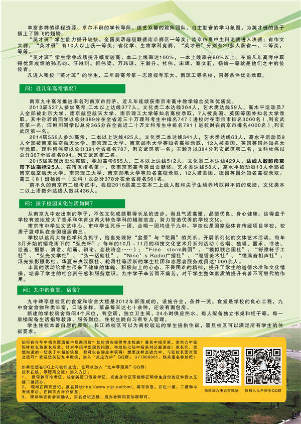 凡进入我校“英才班”的学生,三年后高考第一志愿报考东大、南理工等名校,同等条件优先录取。