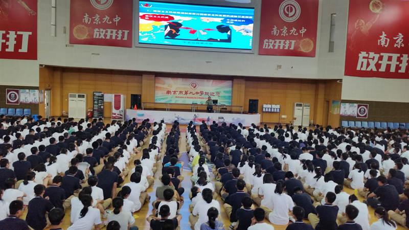 2016年8月23日下午,南京九中邀请了南京政治学院的袁周老师开设了一场名为“应对复杂安全形势,深化国防军队改革”的国防军事知识讲座,700余名高一新生齐聚体育馆二楼,听取了这一讲座。