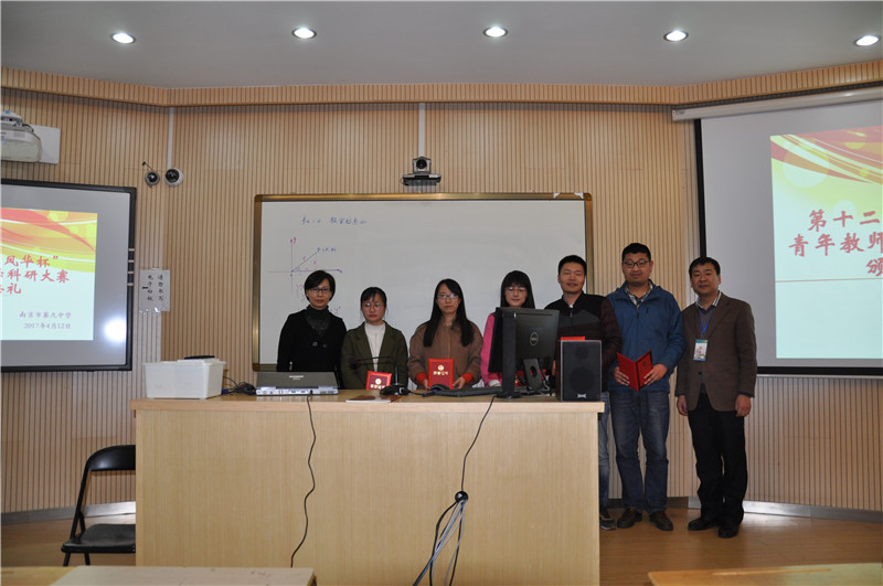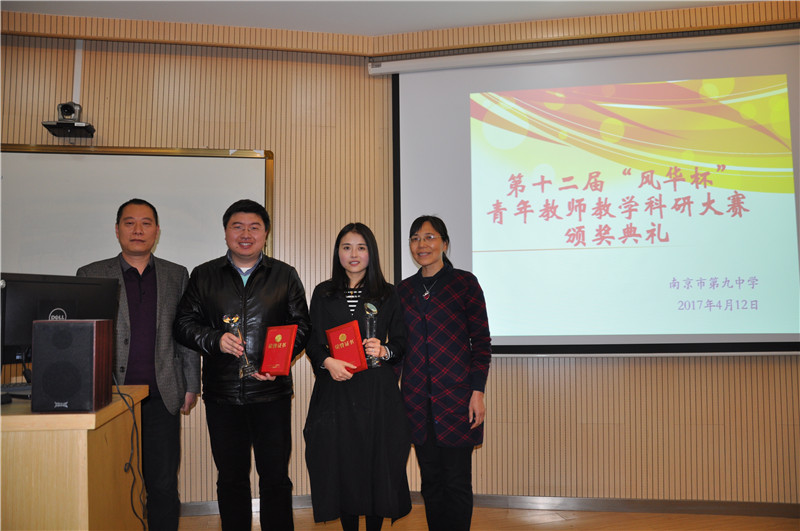 2017年4月12日下午,南京市第九中学第十二届“风华杯”青年教师教科研大赛的颁奖典礼隆重举行。下午第三节课,本届“风华杯”赛的文理科杯主获得者——戴天和张翼飞两位老师面向老师们分别开设了一节精彩的展示课,课后,玄武区数学教研员和我校英语特级教师张茹芳老师对两位老师的展示课做了分析、并都给予了高度评价与赞赏。