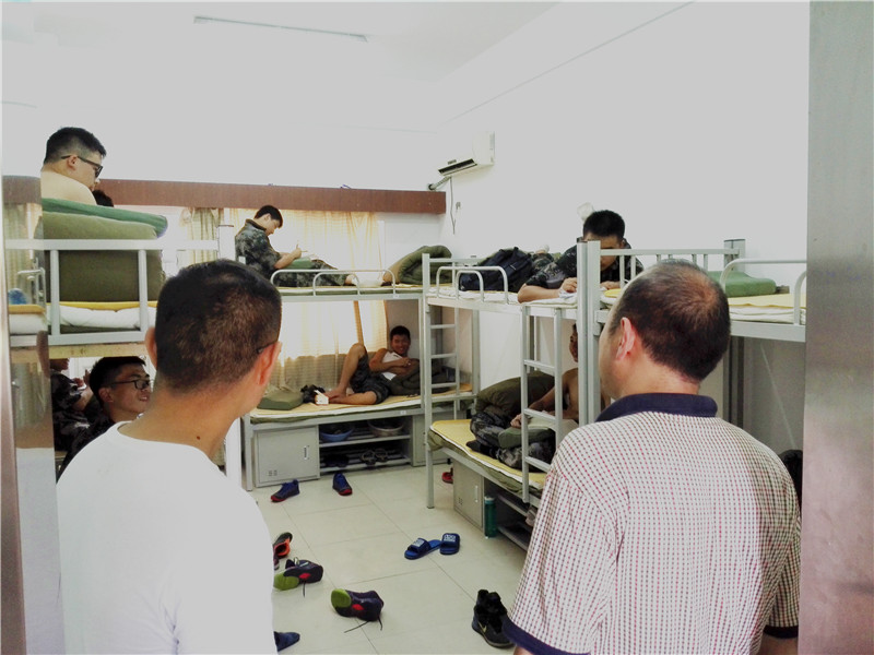 8月7日上午,南京市第九中学校长张恒柱、校长助理桑小兵、王艳飞、总务处副主任郭成等一行来到国防训练基地看望正在这里军训的2017级高一全体师生。